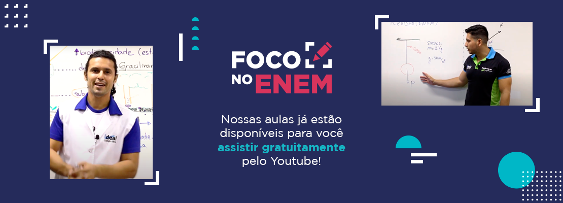Agora, para dar continuidade ao projeto, disponibilizamos aulas gratuitas em nosso canal no Youtube para que os alunos interessados vejam quando, onde e como quiserem. É o Foco no Enem direto no seu celular ou computador!